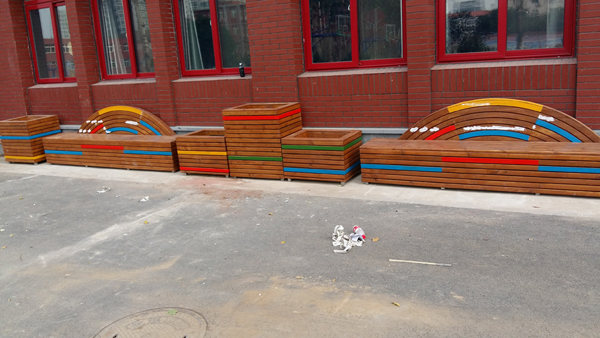 本公司為十一學校一分校校園文化施工項目于今日驗收竣工。用學校標志中的五種標準色做主色調(diào),生動活潑,符合學校特色,金屬座椅形式有趣新穎,吸引青少年觀看使用。讓校園靜區(qū)感覺更溫馨、現(xiàn)代。