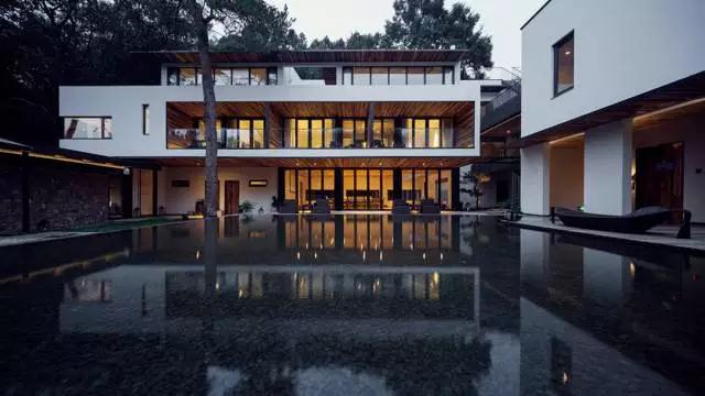 為了強化“禪院”的體驗,“山”的意象也在體驗中被一再提示,不僅進入酒店前需要真實的爬山,一條“游山”的路徑也被設計進了酒店內部:入口及院落被分解在多個標高,爬升行為被有意識地與場所光線的曖昧差別聯系起來。光線被挑檐、水面、柱廊、格柵、天窗等要素仔細控制后,由下至上形成由暗『晦澀』及明『現代』的氛圍轉換,最終在只能看見天與樹冠的屋頂露臺達到明的極致,建筑『人工』從視線中消失。