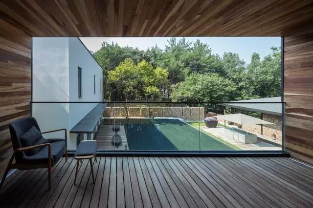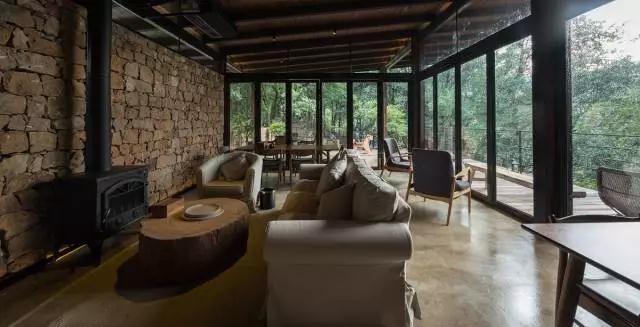 在觀景體驗的營造上,設計著重表達了與自然“對坐”的觀念。充滿儀式感的框景角度與院落軸線,無不提醒使用者思考“人——天『自然』”這一組對象的對話關系。而自然、在地的材料使用:木、石、鐵、白色涂料及玻璃,也暗示著一種自然建造的鄉野現實。
