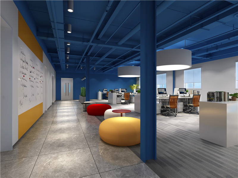 色彩明亮的辦公室空間設計,是本設計最大的一個設計亮點,兩個白色的圓形吊燈,增加了辦公室的亮度和活力,色彩各異的圓形休息座椅,給公司增加一絲人文情懷,給來訪客戶和公司員工提供了一個安靜、舒適的休息休閑區域。