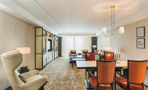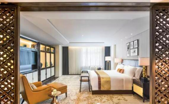 酒店158間客房,從標準客房到總統套房擁有多種寬敞房型。客房的材質包括皮革、青銅、漆器、絲綢、石材,奠定了華麗的基調。在家具和紡織品上,我們也反復斟酌,結合中世紀現代設計的風格,營造出古典雅韻的氛圍。