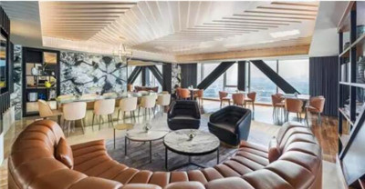 酒店的大堂被賦以全新的詮釋,成為一處供賓客暢談交流、激發創意火花的社交聚會場所。精美的藝術裝置安放在大堂各處,散發著時尚現代之感和強烈的藝術感染力;獨具特色的座椅布置能夠激發客人之間的對話和互動,進而喚醒他們的奇思妙想和靈感;灰色大理石飾面的景觀墻則是大堂的一處吸睛之筆,與實木地板紋理的別致構造交相輝映,景觀墻上的黃銅飾品和金屬網狀隔板也尤為搶眼。
