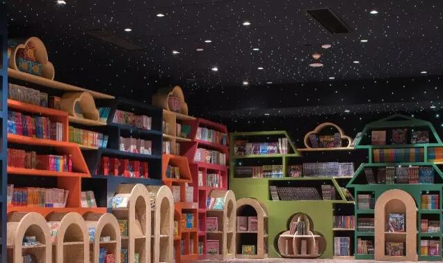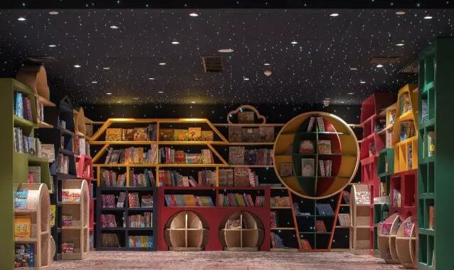 在這間書房的正對面就是兒童繪本館。為了能夠體現孩子天真爛漫的天性,這個鐘書閣中,李想把書架做成了可拆解移動的玩具形式。墻上的書架底部部分都可以自由從墻上分離出來,并同時兼顧擺書臺的功能。當需要場地活動時,它們又可以移回墻面歸位到書架里。最奇妙的是,回歸中后的書架形成了揚州的街景圖案。通過這樣的設計,李想又把揚州的街景文化融入其中。這里的兒童館也采用了五彩繽紛的顏色,這是孩子們的顏色,讓空間充滿了活力,兒童一旦進入這個空間,就像來到了一個卡通版的揚州城市一般。從童書館的一個拐角走出,就是一個小巧精致的玩具館,整齊陳列著成人與兒童的各種學習用具。這就是豐富多采并秉承著揚州文化故事的揚州鐘書閣!