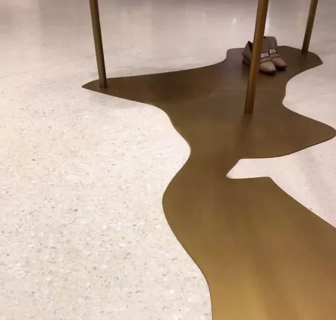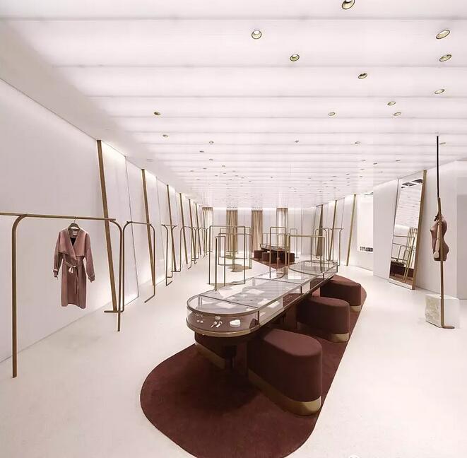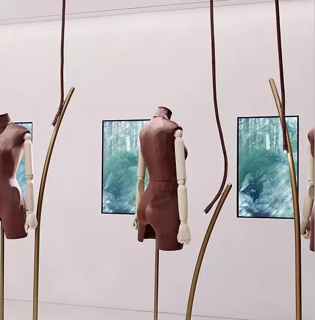 野營的中心是弧形條狀的領地,兩張8米長的首飾臺,用可旋轉座椅替代桌子的豎向支撐,北京專賣店設計這里是野營的活動中心。周圍著的是二三一組的獨立的金屬衣架,底部圖形可隨意拼接,北京專賣店設計模擬營地中大片葉子簇擁在一起的輪廓,頂上陽光板吊頂上的點光源的分布與地面水磨石的骨料變化范圍相對應,與衣架的組團相呼應,烘托出“領地“感。 北京專賣店設計入口大柱子上手工編織物來自和waa合作的一位藝術家之手,暗紅色調一直延續到更深處,化作泥濘的土地。