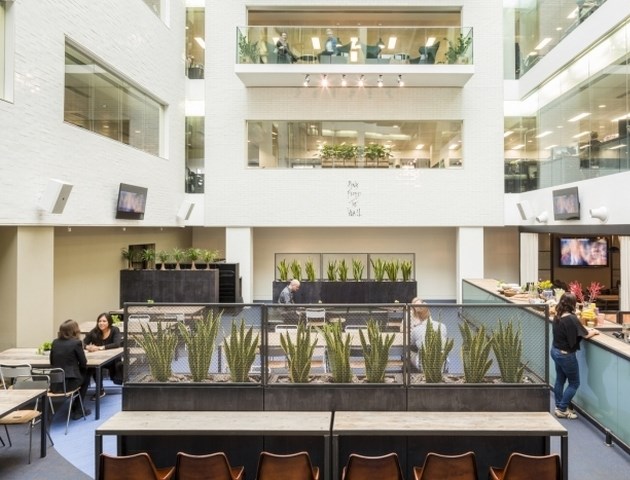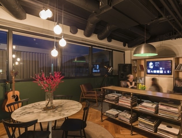 每一層樓都采用低層的照明設置、裸露的天花板、黑色的可回收木地板,還有黑色的窗戶框,周圍是一圈與眾不同的深綠色飾物。這間新辦公室不僅高端大氣,而且能夠吸引那些大牌的音樂藝術家前來錄音,這里真是太舒適了。