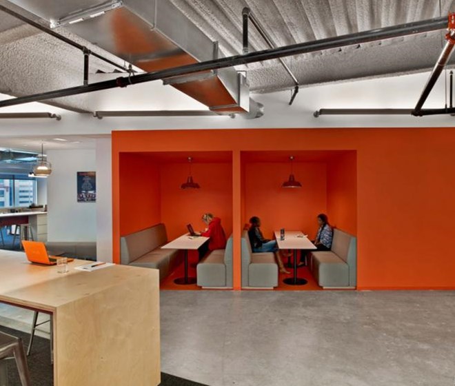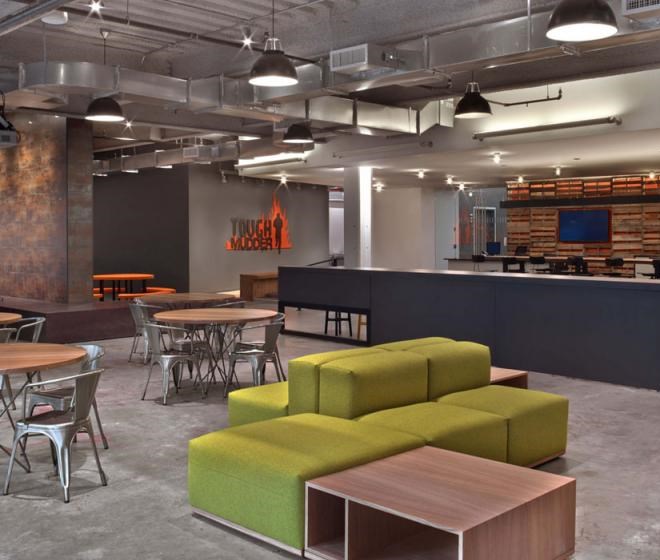 客戶進入辦公室應(yīng)該可以通過辦公室的顏色、形狀和工作氛圍來描述出該公司是做什么的,并且怎么做的。Tough Mudder的總部就是這樣的設(shè)計作品,該辦公室是由M Moser Associates完成的。
