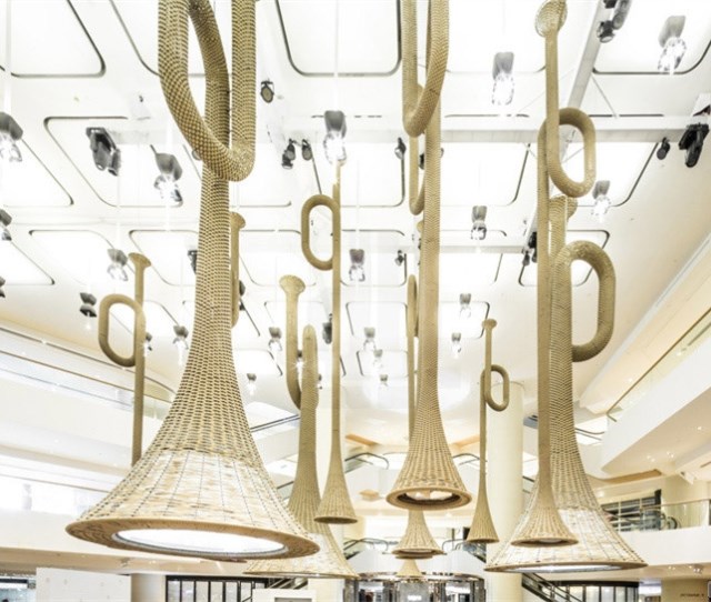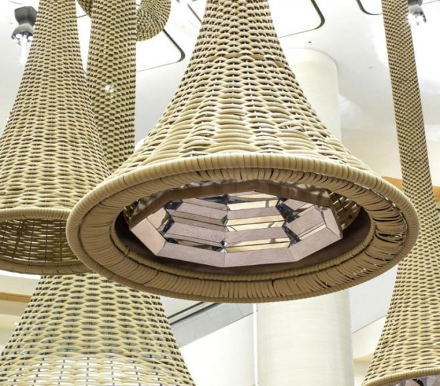 “this is OUR place”以懸掛在中庭天花板上的成對的大型音樂號角為特征,懸在空中的樂器是由柳條編織而成,與青銅金屬表面形成溫暖的氣氛。裝上多媒體之后,人們還能沉浸在3個大號角的360°全景下。