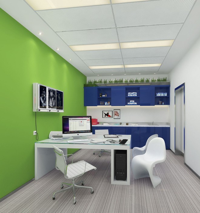 這兩種顏色都屬于可以給患者帶來(lái)安靜,平穩(wěn)的心情的顏色,但這兩種顏色又是屬于冷色系,我們不能讓本來(lái)就冷冰的醫(yī)院再添加太多冷色系的元素,空間需要有動(dòng)感,由暖色系來(lái)作為主色調(diào)。