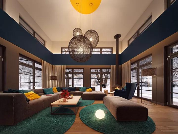 同樹枝結(jié)構(gòu)相類似的還有花瓣型吊燈,設(shè)計獨特美觀,光源如同螢火般匯聚在一起,讓房屋充滿溫馨。