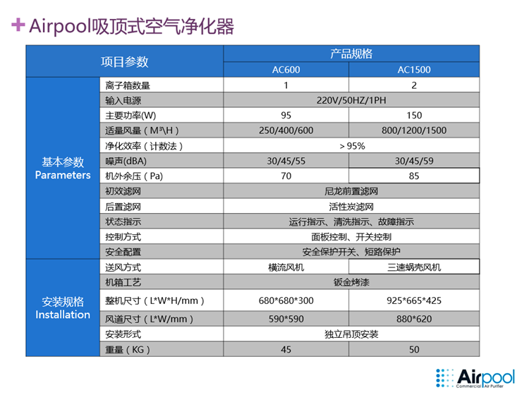 自由吊頂式商用空氣凈化器的優勢: